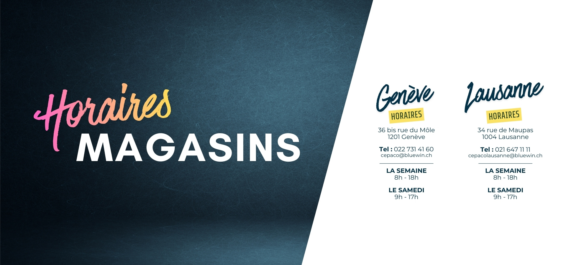 CEPACO est le centre d’achats spécialisé en coiffure et esthétique avec deux magasins à Genève et Lausanne. Nous proposons un large choix de produits, matériels et mobiliers pour les professionnels de la beauté. Distributeur exclusif de nombreuses grandes marques, nous offrons expertise et solutions sur-mesure pour votre activité.
